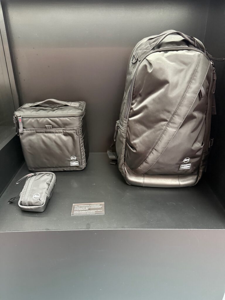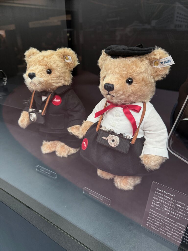 会場にはアニバーサリーグッズの展示もあり、シュタイフ社とのコラボレーションによるテディベア「エルンスト」と「エルジー」や吉田カバンとのコラボ「Leica x PORTER BACKPACK with CAMERA CASE」など気になるものが多い。