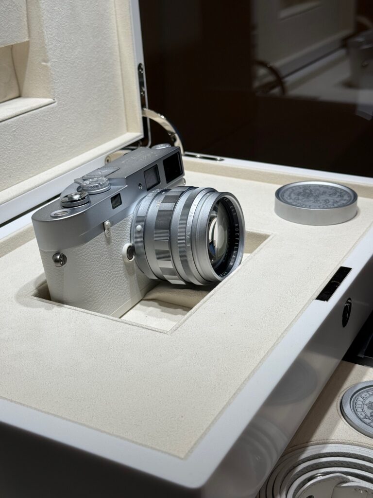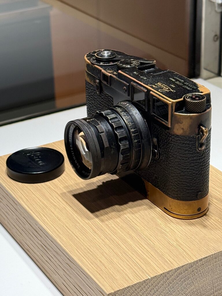 ローマ教皇フランシスコに贈呈された「ライカM-A」と「ライカ ノクティルックスM f1.2/50 ASPH.」のセット。父親が使用していた「Leica MP-114 black paint」を息子がプレゼンテーションするなど、父親との思い出と共に大切に保管されてきた背景は印象に残りました。