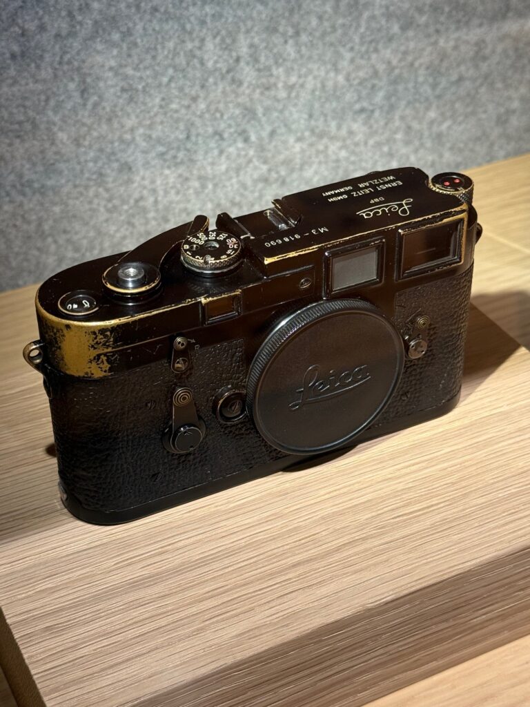個人的な注目はブラックペイントライカです。フィルムカウンター(文字盤)が通常の白色から黒色になっている「Leica M3 black paint Black Dial」やDR Summicronのブラックペイントはとても珍しい。