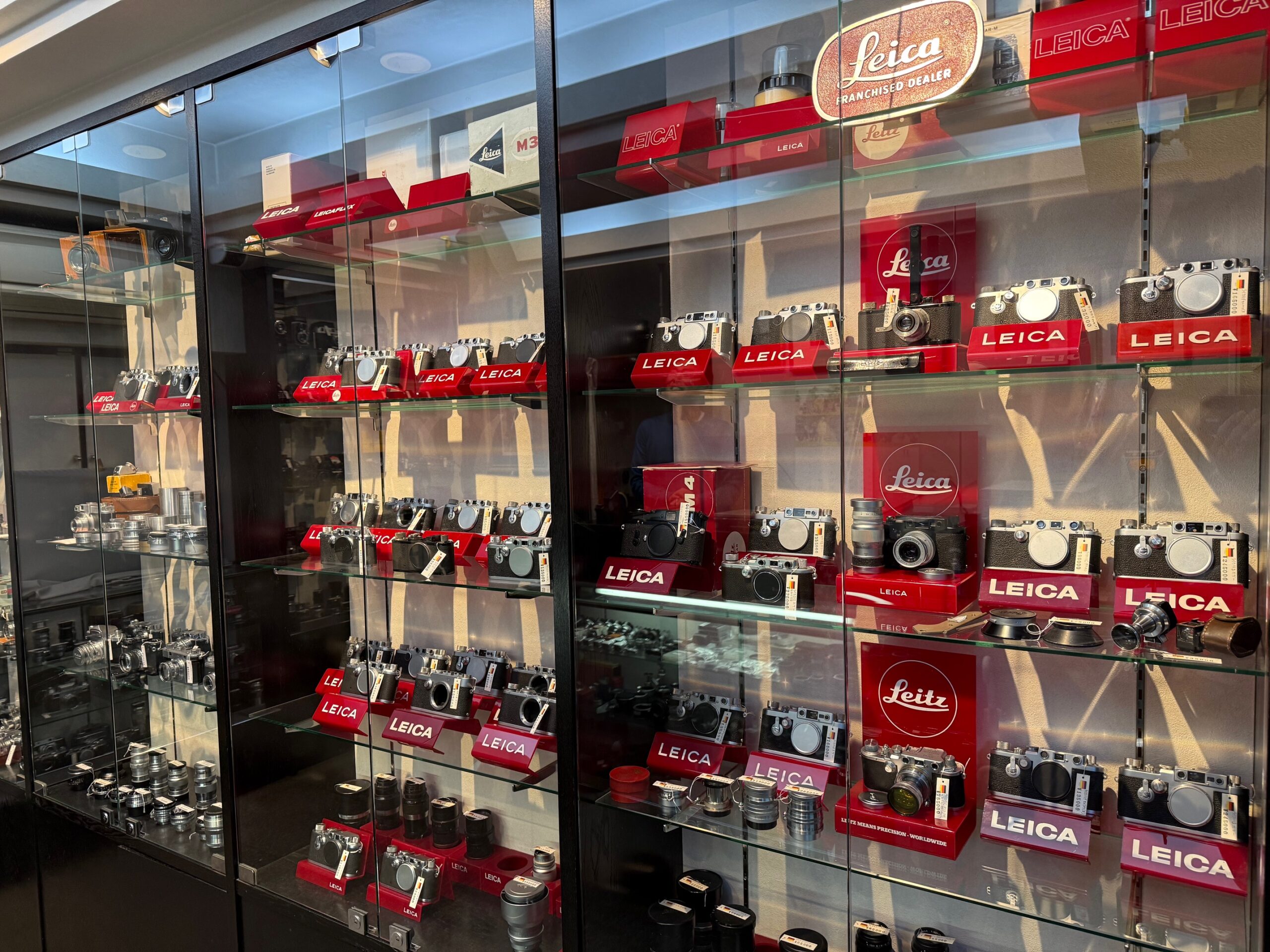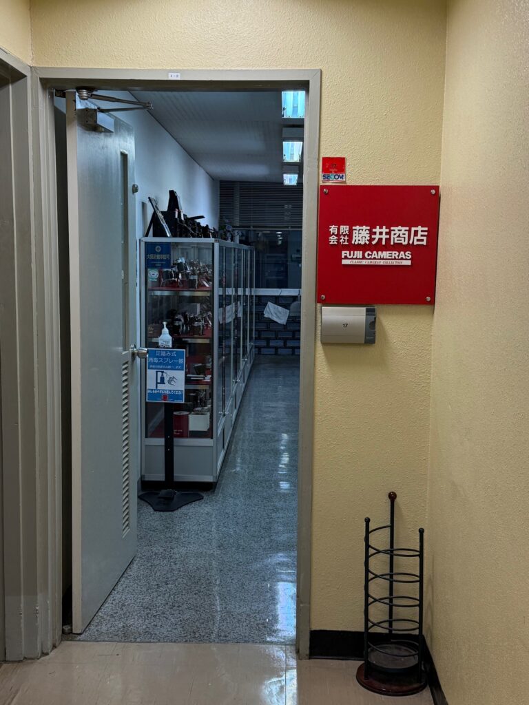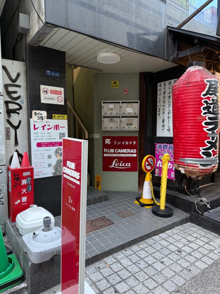 フジイカメラのすぐ近くにあります。ビル2階に上がると正面のショーケースにニコンやライカのフィルムカメラが待っています。