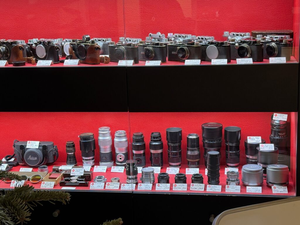 質問には店主が丁寧に対応してくれます。私は一人でじっくりと観察する場合が多い。ライカ製品も多く取り扱っています。