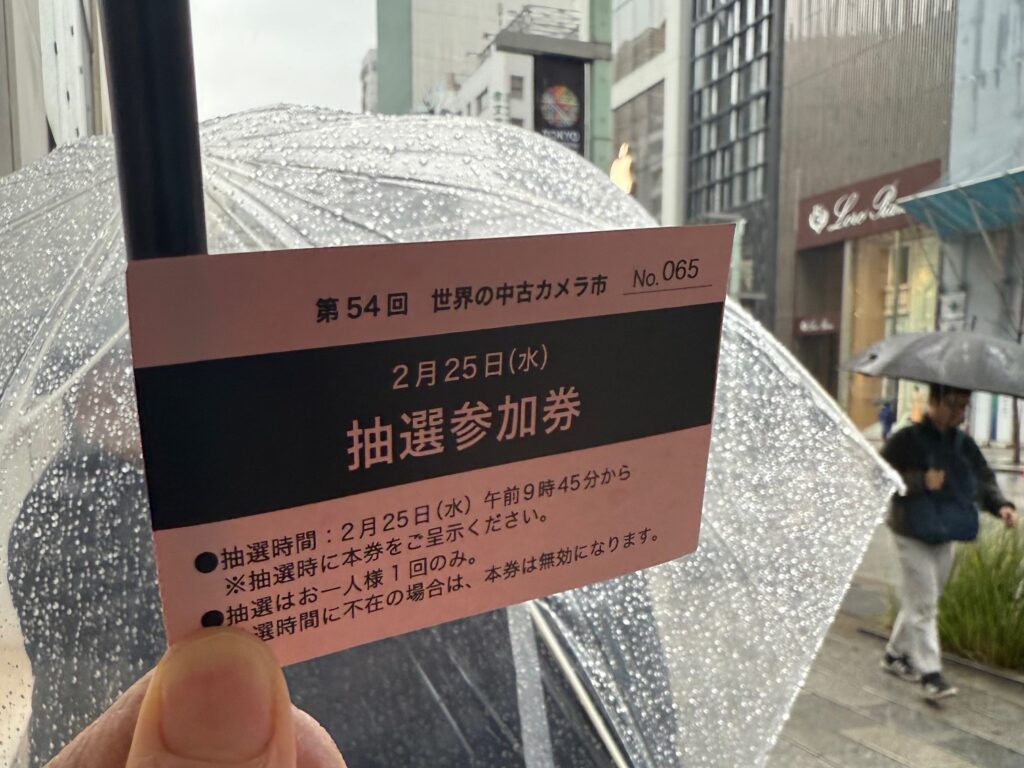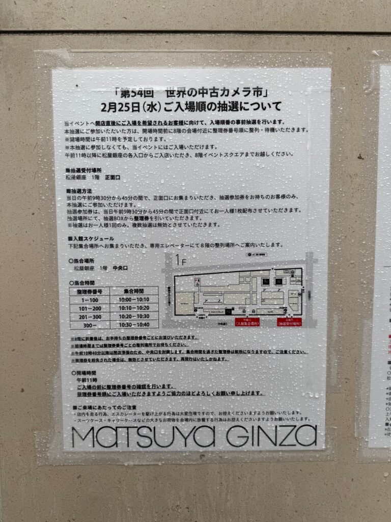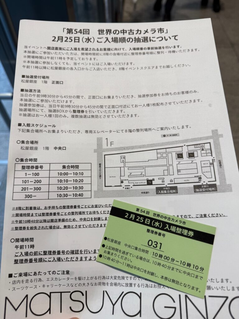 松屋銀座の開店時間は11時。カメラ市は9:45に抽選参加券を配布してから抽選を行なっている。